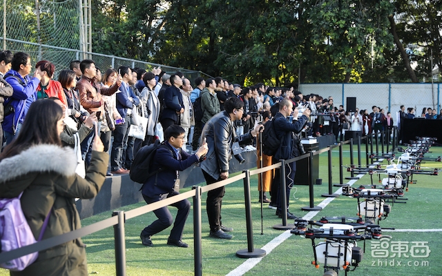 值得一提的是,MG-1P系列的遥控器不仅讲控制距离提升至3000米,还支持一控多机,也就说每个遥控器可以控制多台无人机(最多同时5台)在东北、新疆等大型地块的作业上能够提升单人效率,减少作业时间。从现场的展示视频我们可以看到,5台植保无人机同时起飞作业的场面还是非常壮观的~