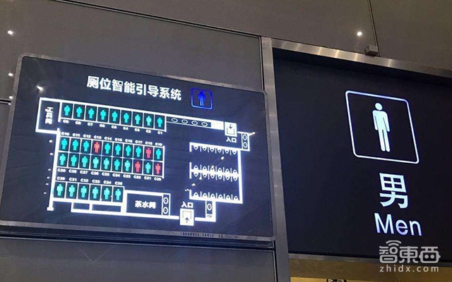 利用物联网技术,厕所内的传感器与入口处的电子屏幕实现了联网。厕所入口的电子屏幕,不仅显示厕所内的空间平面图和各个厕位分布位置,还用交替变换的红绿两种颜色表示厕位是否正在被使用。每个厕位上方也有LED显示屏标示“有人”或“无人”。