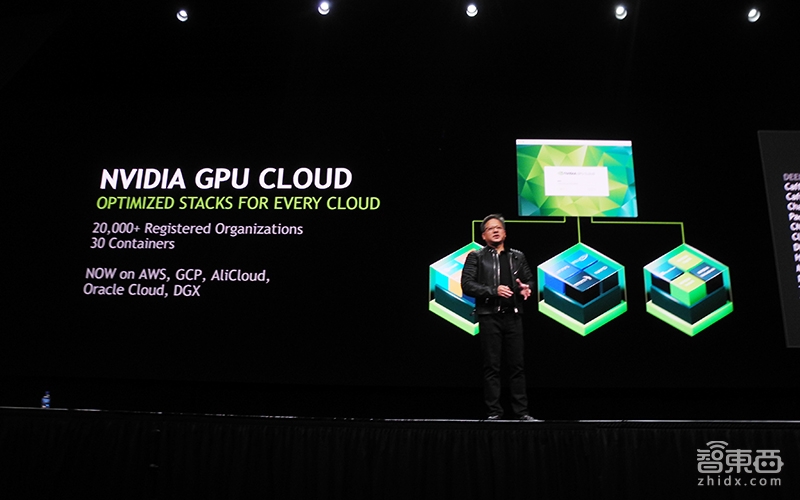 此外,去年的GTC上,英伟达推出了“英伟达GPU云(NVIDIA GPU Cloud)”,但它不是一个云计算“云”,而是一个能让人轻易地从零开始搭建一个深度学习的项目。今天老黄宣布,AWS、阿里云、DGX、GCP、Oracle Cloud上都开始支持英伟达GPU云了。