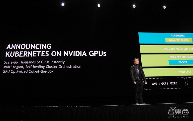 同时,老黄还在现场宣布,KUBERNETES现在能够支持GPU了。KUBERNETES能够在主机集群之间提供一个能够自动化部署、可拓展、应用容器可运营的平台,通常结合docker容器工具工作,并且整合多个运行着docker容器的主机集群,不仅能够提供更大的计算力,还能够有更大的容错空间。