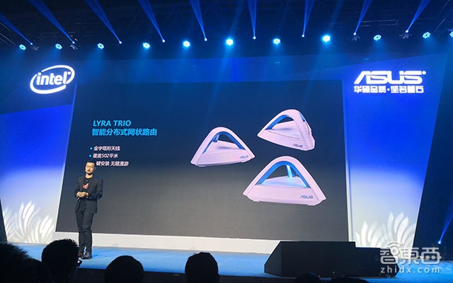 第一款产品,针对别墅或大户型用户华硕推出LYRA TRIO智能分布式网状路由器,可将天线收纳到金字塔结构中,覆盖面积达502平方米,可实现一键安装,实现无缝漫游,售价为2999元。