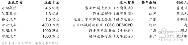3、跨界造车,创始人来自其他行业,多数是上游零部件企业、家电行业,代表企业有万向汽车、江苏敏安、格力汽车等等。