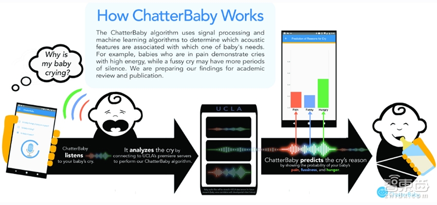 智东西5月14日消息,近日,《连线》杂志上发表了一篇文章,介绍了一款名为Chatterbaby的AI APP。这款APP可以收集婴儿在不同感受下的哭声,并通过机器学习对这些哭声频率和特征进行分析学习,从而告知父母,他们的孩子为什么而哭。现在,这个APP可以分辨孩子的哭泣是因为饥饿、烦躁还是疼痛。今后,或许还可以用来诊断自闭症。资料显示,这款APP由美国加州大学洛杉矶分校的非盈利组织开发。
