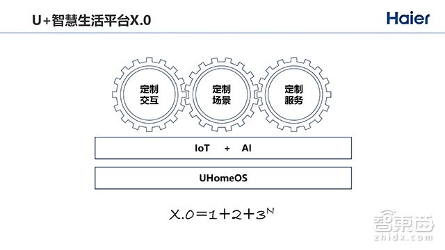 如果要用一张图来总结U+智慧生活平台的定位,我们取名为U+智慧生活X.0。在公司,我们叫1+2+3^N,1是指UHomeOS,2是指IOT+AI。对于3^N,我们认为交互方式很重要,用户肯定不只有一种交互方式,用户可以定制场景和服务。这是我们对U+平台的归纳,在后面我也会讲一讲。