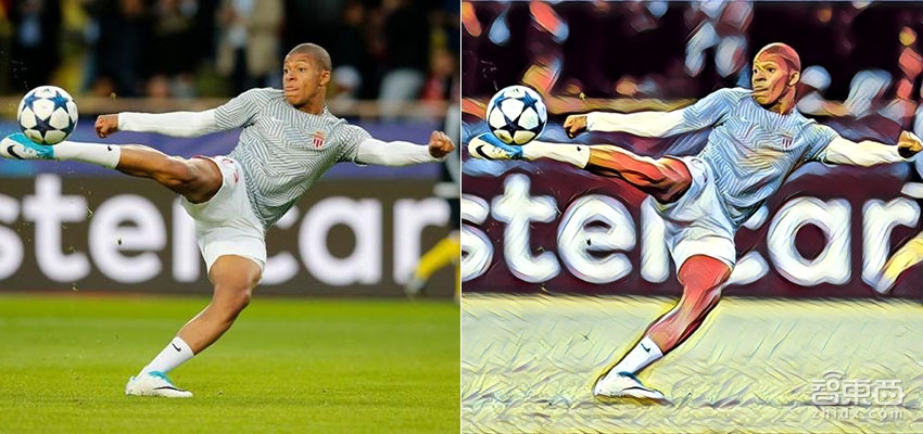 Prisma可以将拍摄的普通照片进行处理,模仿著名艺术家画作的风格,最终呈现出选定的效果。上图就是Mate10上用Prisma创作的过程,我选取了今年世界杯期间法国队的黑马球员姆巴佩的运球图片,进行了Tokyo风格的渲染处理。只需要轻轻滑动处理的图片区域,就可以轻松变换渲染风格。