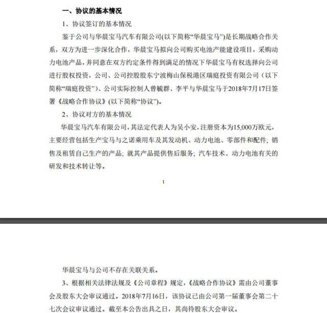 1、华晨宝马8.15亿元购买宁德时代电池项目