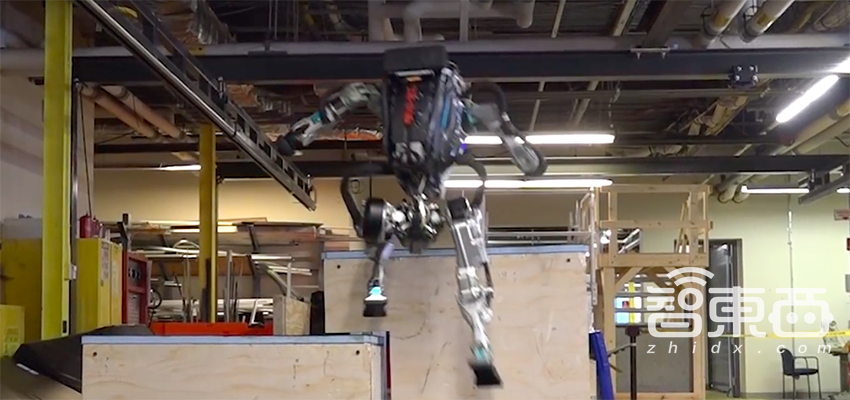 看到没,现在的Atlas已经学会了行进中的单腿跳跃了,不再是以前的立定双腿跳了。