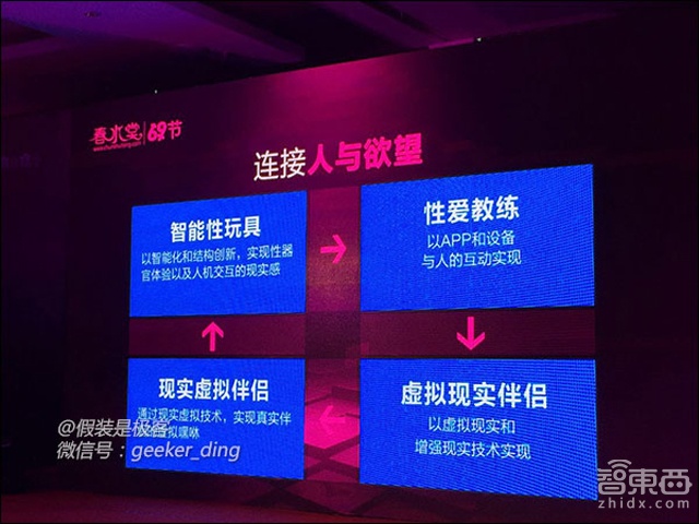 春水堂同时公布了以“智能性爱”为核心的智能硬件战略,提出“连接人与性健康、连接人与欲望、连接人与人”的发展理念。为了服务于一群人的一类需求,春水堂今年下半年也会推出智能情趣酒店及情趣卧室项目。这个项目将最先在深圳落地,之后也会在北京及其它地区推出。