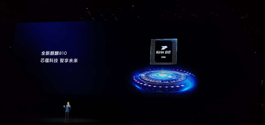 在宣布华为手机半年销量过亿后,何刚首先详细介绍了nova5的处理器麒麟810的情况。麒麟810采用台积电7nm制程工艺,这意味着华为成为同时拥有2枚自研7nm芯片的厂商。