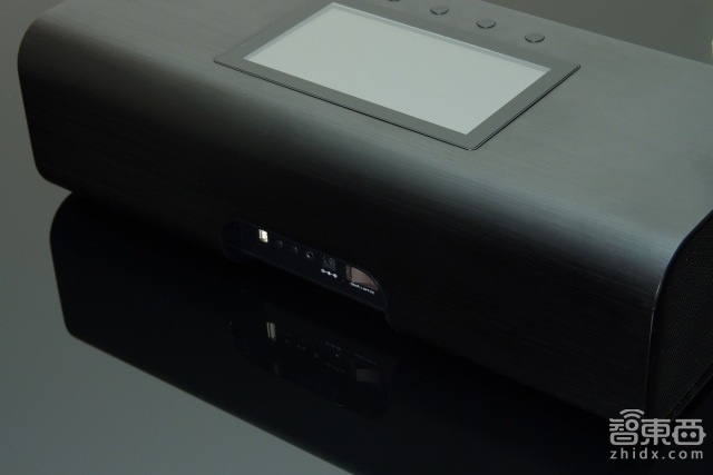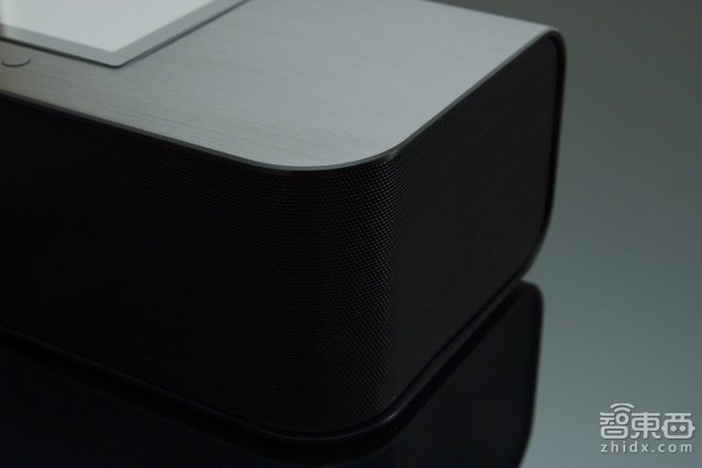 有了强大的触摸液晶屏和手机APP的加入,音响上的实体按键就显得不再是那么重要了。机身仅有设置了四个按键,它们分别负责:开\关机、播放\暂停、音量+、音量-几项较为实用的功能。按键设计有背光,在点按时会亮起白色的灯光,而开\关机键还会根据音响不同的工作状态,显示出不同颜色的灯光。
