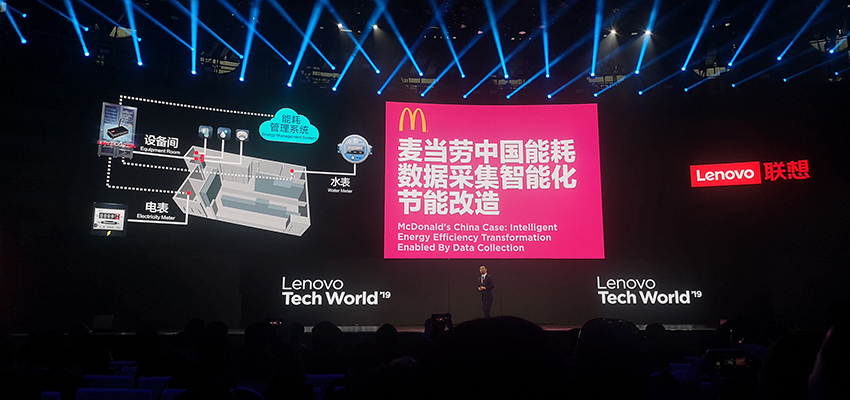 刘征介绍道,基于Leez开发平台,联想为麦当劳中国提供了一整套能耗数据采集与智能化的节能改造,为麦当劳节省了大量能耗成本。麦当劳中国CIO蔡栋也通过一段视频介绍了麦当劳在智能化领域的进展。