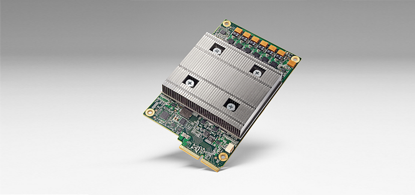 研发之初,由于谷歌需要尽快将TPU部署到内部现有的服务器中,因此研发人员选择将处理器打包成外部加速卡,以插入SATA硬盘插槽后进行嵌入式安装。