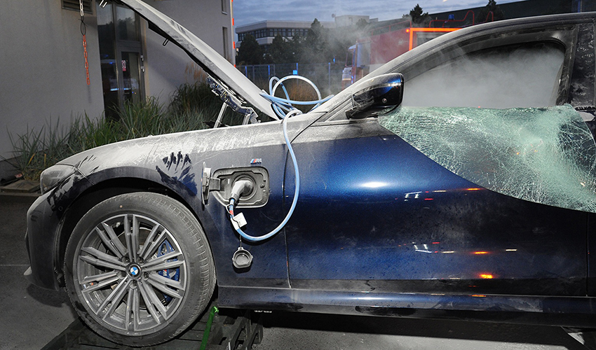 捷克消防部门到达现场后,用便携式灭火器对火势进行了控制,接着在起火车辆下放置了便于移动车辆的滑动楔块。他们将车辆迁移至开阔区域进行降温处理。