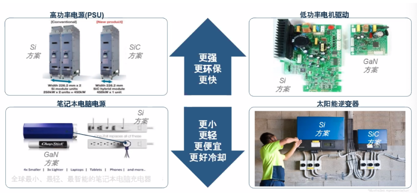 在5G电源和开关电源市场,基于碳化硅器件的PFC升压转换器,能够在使用更少器件数的前提下,实现更高的功率密度,进而达到最高98%的能效等。