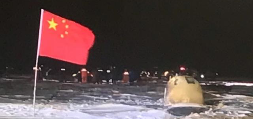 最终,嫦娥五号的降落地点在内蒙古四子王旗附近,降落后,搜索分队即使对返回器进行回收。