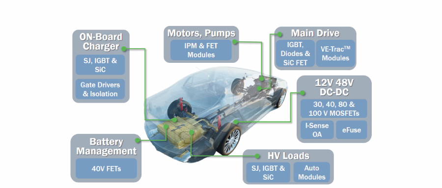 安森美半导体的新能源汽车解决方案,提供车载充电器、电机和泵、主驱动、12V 48V DC- DC、高压负载、电池管理等产品组合,致力于实现零排放汽车。