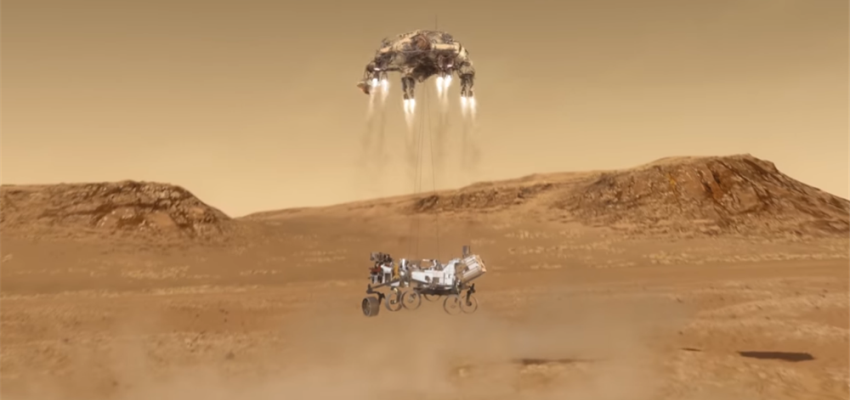 在太空中航行了将近7个月,行驶了4.72亿公里,然后以每小时19,000公里的速度穿透火星大气层——毅力号开始下降到火星地表。