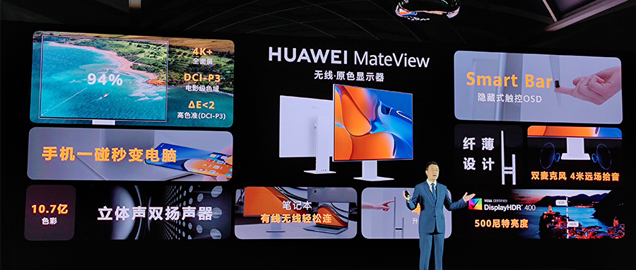 不论是集4K+分辨率、10bit色深、HDR400认证等特性于一体的华为MateView,还是搭载3K 165Hz屏幕并兼顾影音体验的华为MateView GT,都体现了华为软硬件技术实力。
