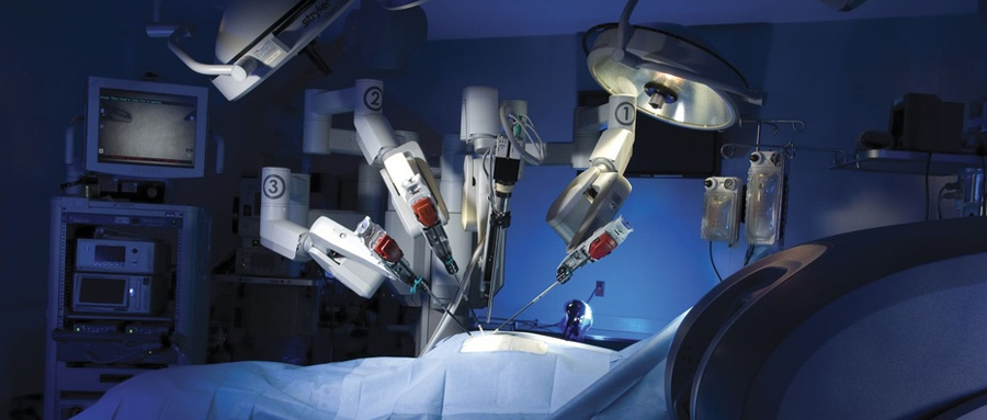 ▲手术中的达芬奇手术机器人