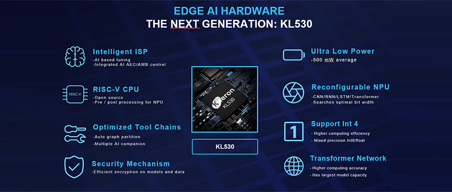 “KL530是对低功耗、高效率的边缘AI芯片的又一重大飞跃。”耐能创始人兼CEO刘峻诚博士说,“凭借KL520和KL720,耐能AI芯片在能效和性能方面已达到市场领先地位,而KL530的功耗比将会进一步拉开与同行的距离。”
