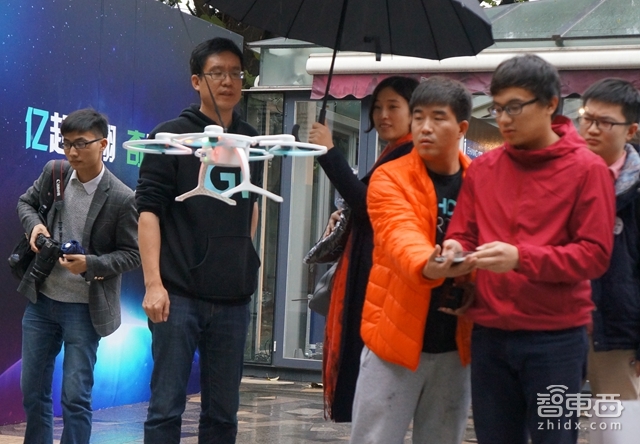 在沟通会结束后,智东西(公众号:zhidxcom)也体验了一番用APP直接遥控无人机的方式。整体来看操作的确简单,不过在“力度”的掌握和精准度上还需要一定时间来熟悉和磨合。