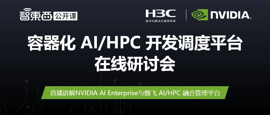 5月31日,智东西公开课联合新华三、英伟达策划推出「容器化AI/HPC开发调度平台」在线研讨会。本次研讨会邀请到英伟达中国NVIDIA AI Enterprise软件产品负责人王玉君和新华三集团智慧计算产品线产品经理兰涛参与,直播讲解NVIDIA AI Enterprise与傲飞AI/HPC融合管理平台。