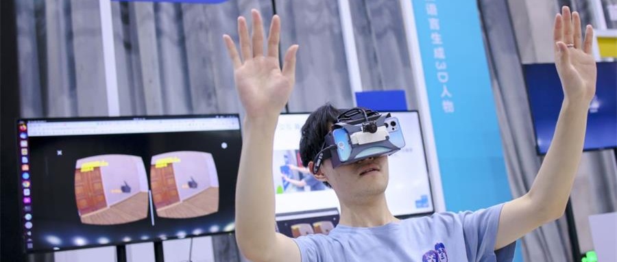 在进门第一个展台,旷视展出了一款VR裸手交互Demo。扔掉手柄,裸手操作VR该有多酷炫?这个Demo展示了通过相机捕捉手部的运动状态,实现虚拟世界的复杂交互,可以说是让人提前体验了一把元宇宙。