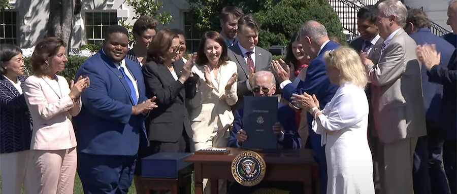 ▲美国总统拜登签署《美国芯片和科学法案》(图源:白宫直播)