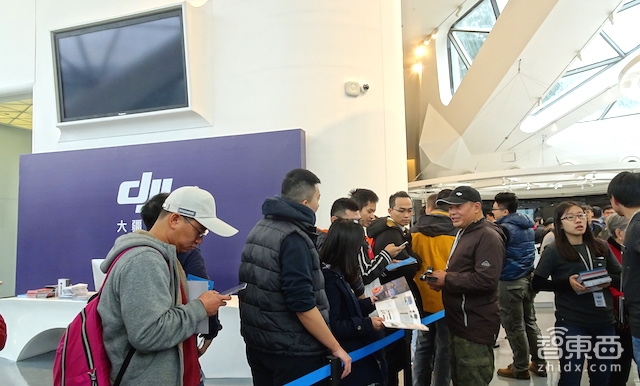 雨天使场外的飞行表演受到了影响,但闻讯赶来的消费者仍不少。针对首日开业,大疆为前300位购买用户提供了八至九折的优惠。