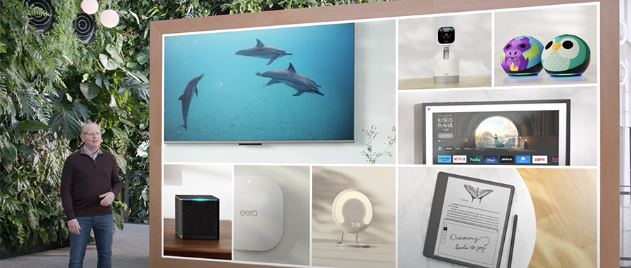 同时,新款电子阅读器Kindle Scribe、第五代智能音箱Echo Dot、第二代车载智能音箱Echo Auto、睡眠追踪器Halo Rise、智能摄像头Ring Spotlight、Blink泛光灯摄像头、新一代路由器Eero以及智能电视Fire TV Omni QLED、智能遥控器Fire TV、电视盒子Fire TV Cube也正式发布。