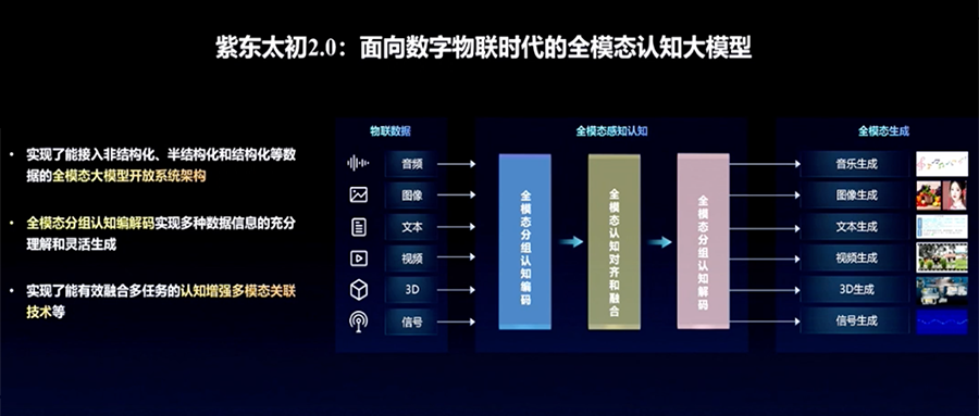 基于这样的认识,面向数字物联时代,紫东太初2.0推出实现了能接入非结构化、半结构化、结构化等数据的全模态大模型开放系统架构。