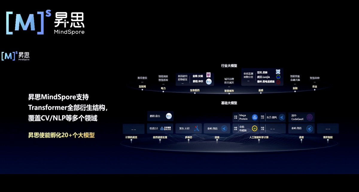 同时,根据华为官方消息,昇思已使能孵化超20个大模型,到年底希望使能孵化40~50个大模型。昇思已孵化的大模型包括悟道2.0、紫东·太初、秦岭·翔语、CodeGeeX等基础大模型,以及金陵·女娲、鹏程·神农、空天·灵眸等行业大模型。