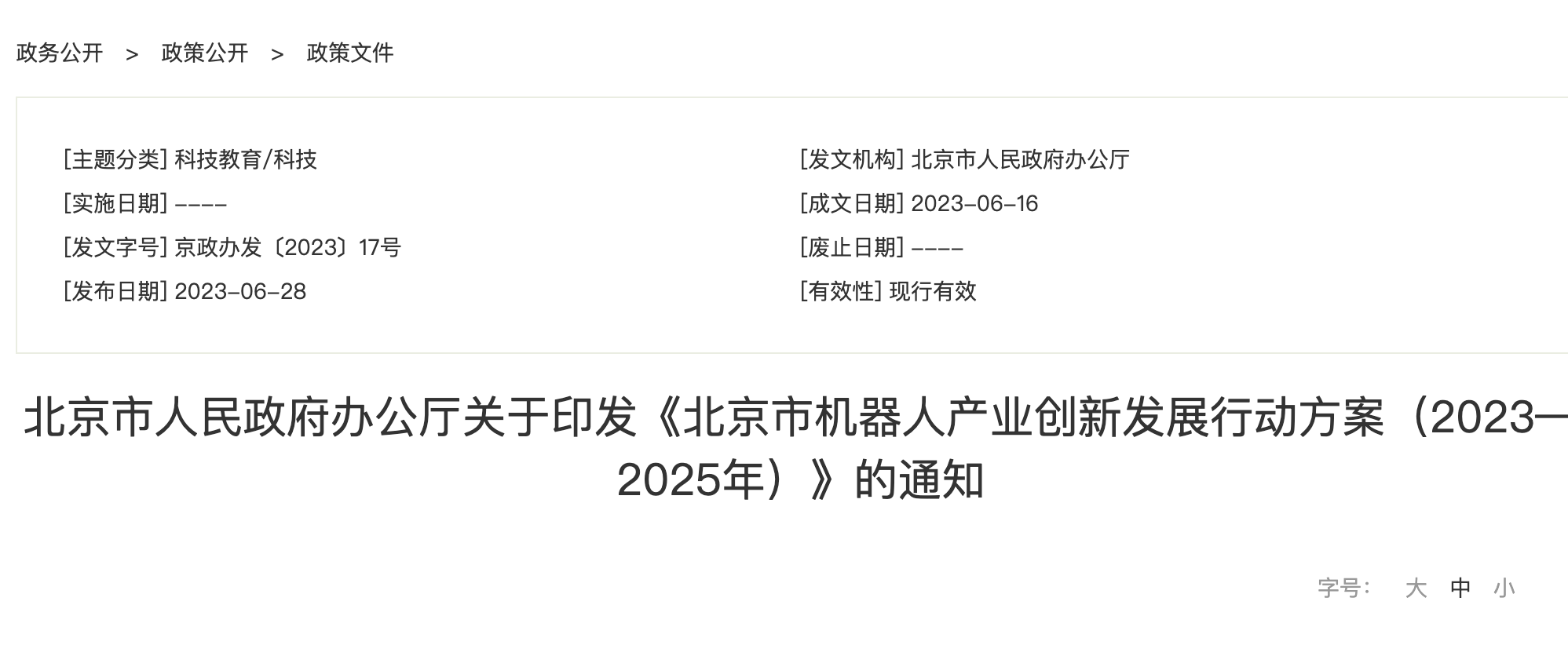《北京市机器人产业创新发展行动方案(2023—2025年)》原文内容如下: