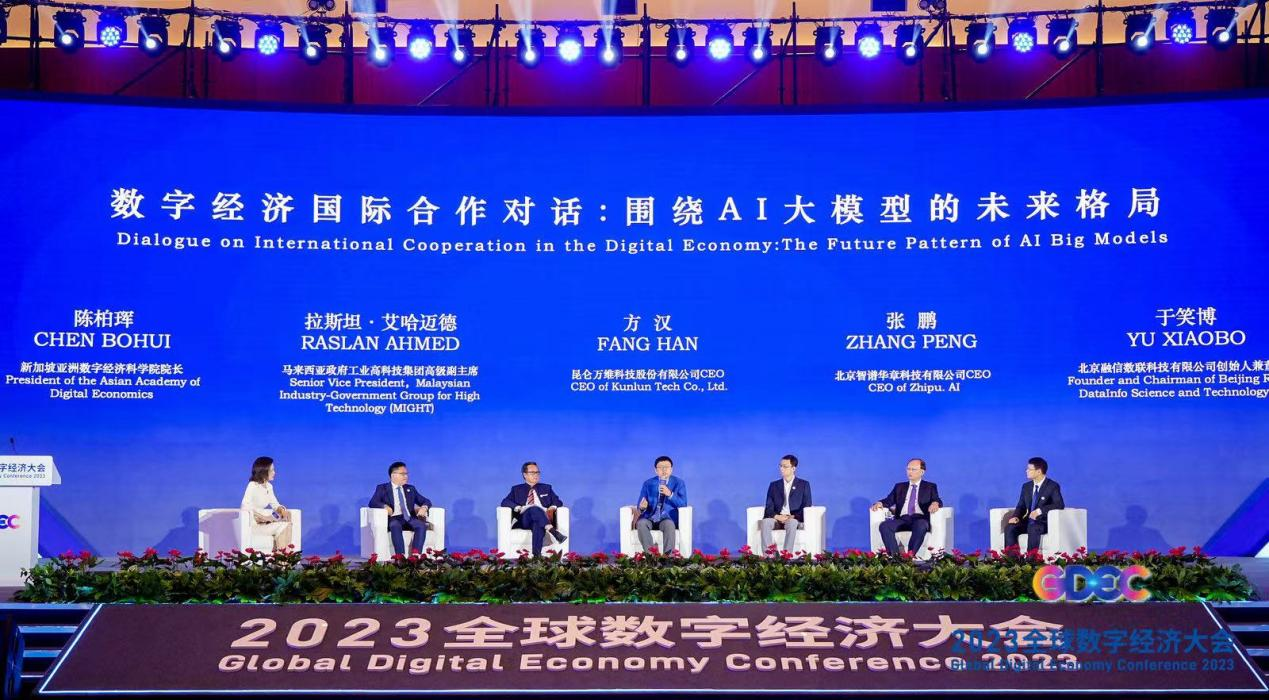 在数字经济国际合作对话环节,新加坡亚洲数字经济科学院院长陈柏珲,马来西亚政府工业高科技集团高级副主席拉斯坦·艾哈迈德,昆仑万维科技股份有限公司CEO方汉,北京智谱华章科技有限公司CEO张鹏,北京融信数联科技有限公司董事长于笑博,云账户党委书记、联合创始人兼首席技术官邹永强等企业负责人,围绕论坛主题,分别就基础软件技术、国际合作、产业融合、AI大模型等领域进行专业分享。