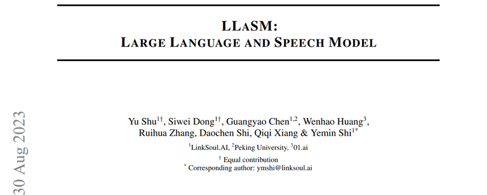 据量子位报道,8月30日,LinkSoul.AI、北京大学和零一万物合作发表论文,提出了一个中英双语的对话模型LLaSM,同时支持录音和文本输入,并开源可商用。论文认为,“语音聊天”才是AI与人之间更方便自然的交互方式,而不仅仅是通过文本输入。该论文的共同一作Yu Shu和Siwei Dong均来自LinkSoul.AI,此前曾经在北京智源人工智能研究院工作。LinkSoul.AI是一家AI初创公司,之前推出过首个开源Llama 2的中文语言大模型。