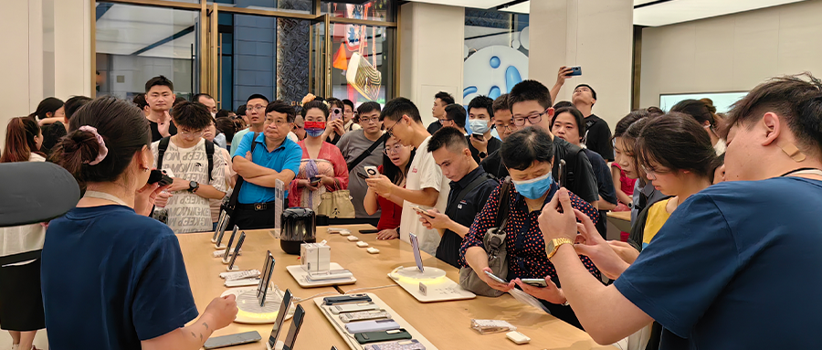 在北京唯一一家华为直营店,门店管理者不得不从深圳调拨人手面对激增的顾客。