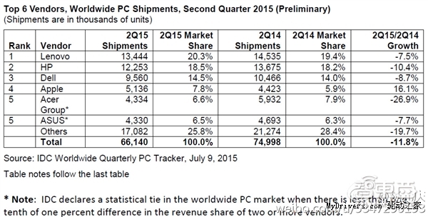 一、品牌和市场份额,IDC2015年Q2的数据显示,联想目前保持PC市场第一的位置,占比20.3%,当季出货量1344万台。但是这组数据背后有2个隐忧,一是紧跟其后的惠普占比18.5%,事实差距很小。二是全球整体PC市场是呈下滑之势的,当季同比即下滑了11%。