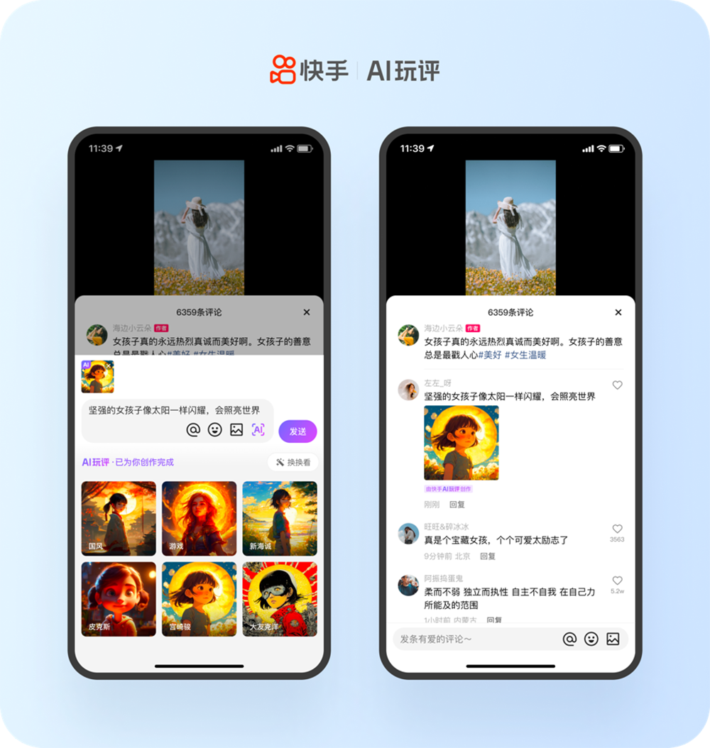据IT之家报道,快手今日宣布在短视频评论区开始内测AI文生图功能“AI玩评”,用户可通过文字一键生成多种风格图片,在评论区进行互动。