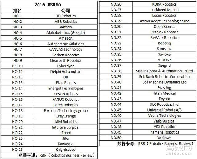 美国《机器人商业评论》(下称RBR)近期公布了第五届2016年度RBR50名单(全球最具影响力50家机器人公司),有三家中国公司跻身其中。2016年度RBR50的最终结果覆盖到了11个国家,除了大型企业集团,其中23%都是名不见经传的初创公司。