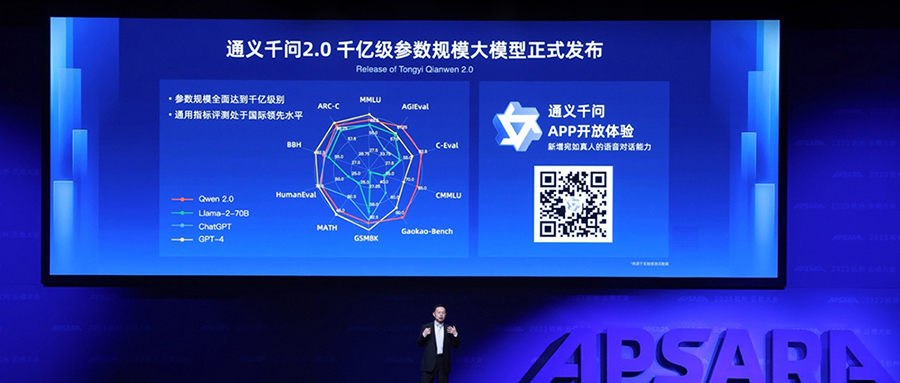 智东西10月31日报道,在今日举行的2023云栖大会上,阿里云正式发布千亿级参数大模型通义千问2.0。在10个权威测评中,通义千问2.0综合性能超过GPT-3.5和Llama 2,正在加速追赶GPT-4。当天,通义千问APP在各大手机应用市场正式上线,所有人都可通过APP直接体验最新模型能力。