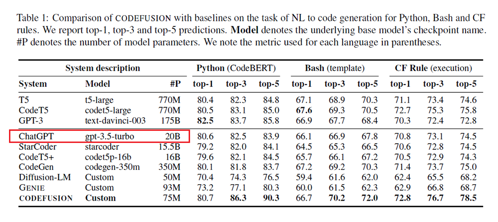 据机器之心报道,近日,微软一篇题为《CodeFusion: A Pre-trained Diffusion Model for Code Generation》的论文引发广泛讨论,因其在做模型对比时透露出ChatGPT参数信息为200亿。该论文于10月26日发表于国际顶会EMNLP,提出一种预训练的扩散代码生成模型CodeFusion。
