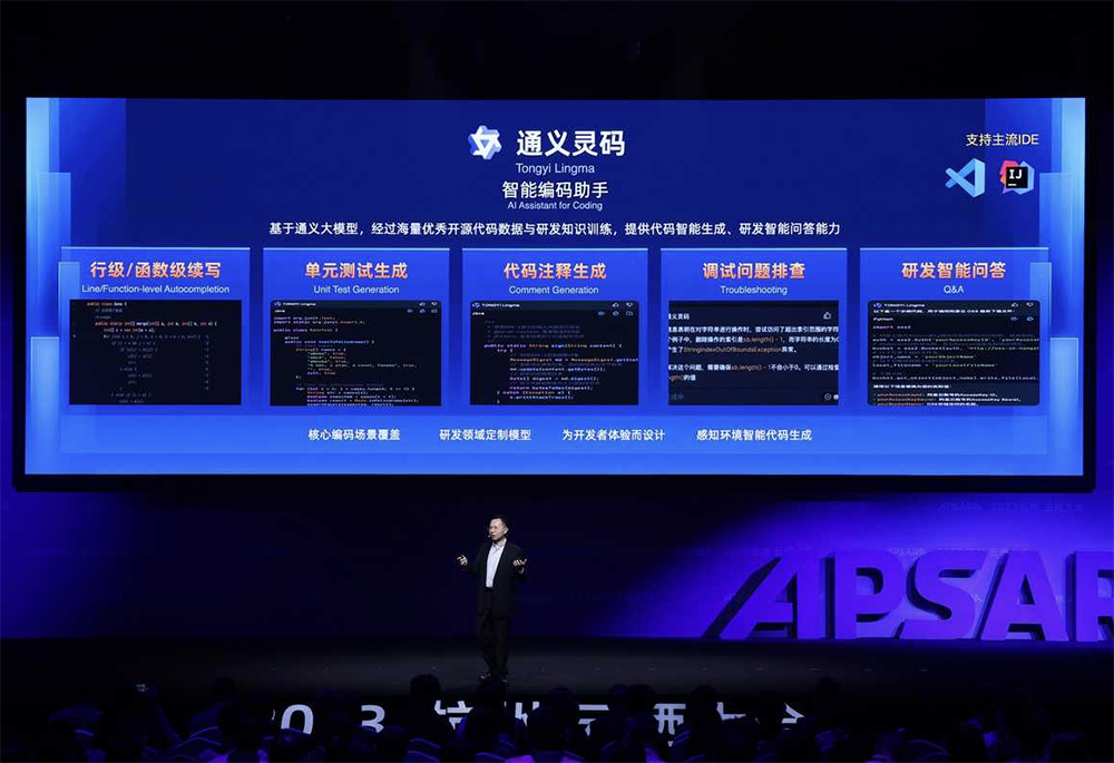 在今日举行的2023云栖大会上,阿里云展示了一款基于阿里云通义代码大模型打造的智能编码助手“通义灵码”。这个编码助手已在阿里云内大规模应用,已面向所有开发者开放公测,各大IDE插件市场均已上线,开发者可下载体验。