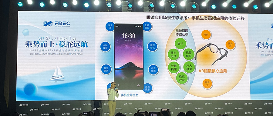 例如导航的“最后一公里”,现在开车去目的地大部分都不可能直接抵达店铺门口,中间相差的路程导航则可以流转到眼镜进行步行导航;还有在开车途中正在听歌,抵达目的地后希望不要中断,如果使用手机需要重新点歌,流转到眼镜上就能直接达到想要的效果。