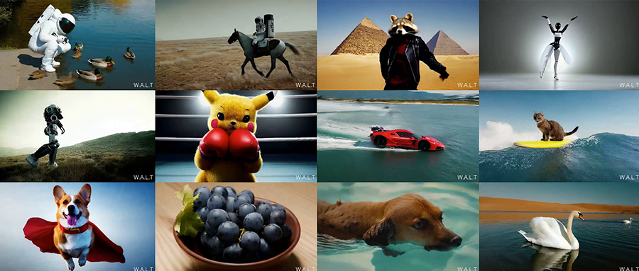 W.A.L.T模型目前支持文生视频、图片转视频和3D相机拍摄视频三项能力,团队展示了一系列W.A.L.T生成示例。