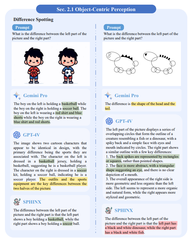 昨日,来自腾讯优图实验室、上海AI实验室、香港中文大学多媒体实验室等机构的团队发表128页的论文,对谷歌Gemini Pro的视觉理解能力进行测评并与OpenAI的GPT-4V比较,同时还与最新的开源MLLM Sphinx进行了比较,其中Sphinx显示了人工和黑盒系统之间的差距。测评涵盖了四个领域:基础感知、高级认知、挑战性视觉任务和各种专业能力。定性样本表明,虽然GPT-4V和Gemini展示了不同的回答风格和偏好,但它们在视觉推理能力上是可比较的,而Sphinx在领域泛化方面仍然落后于它们。具体来说,GPT-4V倾向于详细解释和中间步骤,而Gemini更喜欢输出直接而简洁的答案。