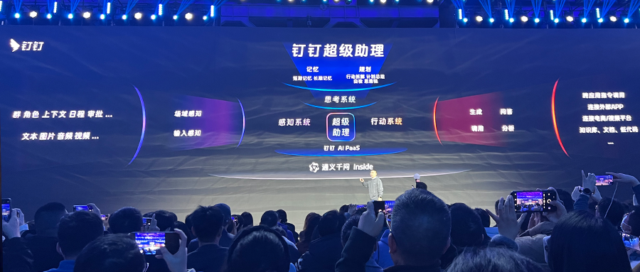 钉钉超级助理基于通义千问大模型能力,结合70万家企业需求共创,形成了个人超级助理和企业超级助理两大形态: