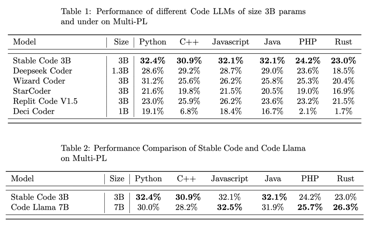 今日,Stability AI发布30亿参数代码模型Stable Code 3B,这是此前发布的Stable Code Alpha 3B模型的后续版本,专为代码补全设计。据介绍,Stable Code 3B性能与Meta的Code Llama 7B相匹配,但体积缩小了60%,它的基座模型在4万亿token的自然语言数据上训练得到,并在此基础上进一步训练。Stable Code 3B适用于多种语言,支持中间填充功能(FIM)和扩展上下文大小等功能,可在PC端实时运行。