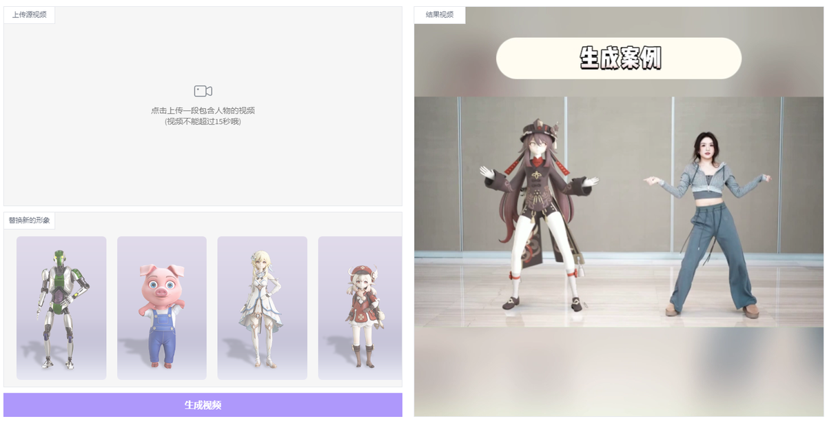 1月16日,阿里通义实验室发布了用3D角色替换视频中角色的框架Motionshop。框架由两部分组成,一是用于提取修复背景视频序列的视频处理管道,二是用于生成3D角色视频序列的姿势估计和渲染管道。通过并行两条管线并使用高性能光线追踪渲染器TIDE ,整个过程可以在几分钟内完成。用户可在魔搭社区试用Demo,上传不超过15秒的人物视频、选择替换人物、选择要替换的虚拟角色模型,等待10分钟左右即可生成。