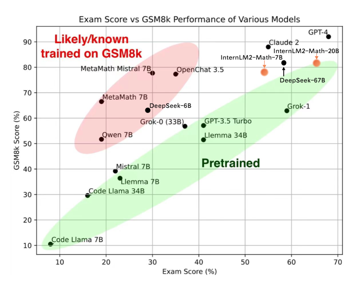 今日,上海人工智能实验室(上海AI实验室)开源发布新一代数学模型书生·浦语数学(InternLM2-Math)。InternLM2-Math是首个同时支持形式化数学语言及解题过程评价的开源模型,代码和模型完全开源,并支持免费商用。基于书生·浦语2.0(InternLM2)的基础能力,InternLM2-Math仅以中轻量级参数规模,即在多项数学评测中刷新开源模型数学能力上限;此外,InternLM2-Math不仅会“解题”,更会“判题”,突破了传统数学大模型应用局限,将为数学基础研究和教学提供优质应用基座。