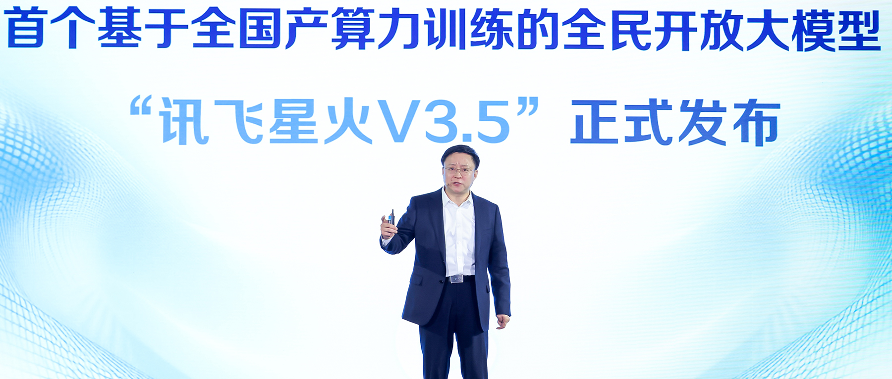 科大讯飞董事长刘庆峰、研究院院长刘聪正式发布基于首个全国产算力训练的讯飞星火V3.5,讯飞星火V3.5七大核心能力全面提升,数学、语言理解、语音交互能力超GPT-4 Turbo。
